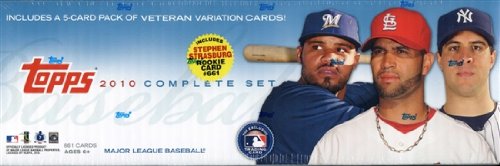 Each complete set of 2010 Topps Baseball contains 661 Regular Cards, the complete sets of Topps series 1 and 2 with a bonus Stephen Strasburg rookie card variation of card #661. Pujols, Teixiera and Fielder are on the cover of this edition. This set has a Bonus 5 Card Pack of photo variations of top stars exclusive to these sets. 5 RETAIL EXCLUSIVE VARIATION CARDS RS1 - Ryan Howard RS2 - Ichiro RS3 - Derek Jeter RS4 - Albert Pujols RS5- Hanley Ramirez
