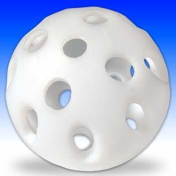 The CSI white perforated golf ball is perfect for at home golf training. Many people chip these balls around on the carpet to make tremendous strides in their short game. The CSI golf perforated balls are 1 5/8" in diameter, the same size as any official golf ball. These golf balls can also be used to practice full swings with any club. They are perfect for backyard training because they will never go to far due to the lightweight perforated design.