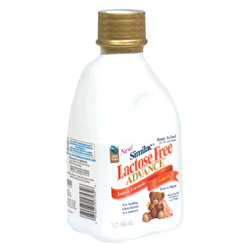 Infant formula with iron. Ready to feed. Do not add water. Easy to digest. For feeding when lactose is a concern. Milk-based without lactose. DHA & ARA: DHA and ARA are special nutrients found in breast milk that are important for mental and visual development. Similac Lactose Free Advance is an excellent choice when DHA and ARA are recommended. Filled by volume to 1 quart, extra space in bottle allows for shaking and easy pouring. Breast milk is recommended. When an infant formula is needed, Similac Lactose Free Advance provides the excellent nutrition of milk protein, but without lactose (milk sugar). Sometimes gas, diarrhea and other feeding problems may be related to lactose. Similac Lactose Free Advance contains easy-to-digest carbohydrates similar to those in Isomil Soy Formula with iron and is fortified with nucleotides, compounds naturally present in breast milk.