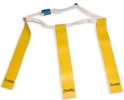 USFTL Approved (Required by the USFTL)- NIRSA Approved - One piece, adjustable design belt - Entire belt comes off with flags - Available in Red, Yellow, Blue, & Green - Sizes: Youth (25"-31"), Adult (32"-39"), Adult XL (40"-48")New design with improved, reinforced stitching. Double stitched so the flags will not tear. One piece, adjustable design means no lost parts. Three flags permanently attached with quick release clip. Entire belt comes off when flag is pulled, making the "tackle" definite and easy for the referee to spot. Please specify color and size when ordering.