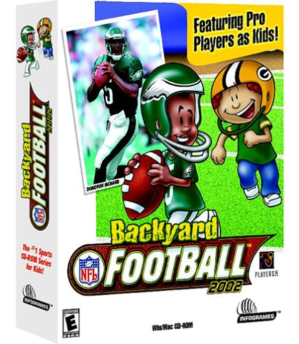 30 of 32 people found the following review helpful: By This review is from: Backyard Football 2002 (CD-ROM) As a longtime hardcore PC gamer, I surprisingly found this game to be a lot of fun with a nice simple interface. There are a couple modes to play from, starting with a Skirmish where you can play a quick game, or a season. There is also a multiplayer LAN-ONLY feature.Starting with a season game, the interface first lets you choose which of the 31 football teams will be in the season (you are allowed to choose about 25 of them), and which team you wish to play as your own. Each division also has a CUSTOM team that you can choose. You can customize this team's name and jersey colors. The team names are limited to the selections they give you, but this is for the purposes of the in-game announcers. Then comes the player selections, which gives you a very wide variety. There are all sorts of players to choose from, from African Americans, Asians, Latinos, and many more. There is also a player in a wheelchair to choose from! The political correctness of this game is deep,... Read more 5 of 5 people found the following review helpful: By A 9-year old software user (Burke, VA United States) - See all my reviews This review is from: Backyard Football 2002 (CD-ROM) Backyard Football 2002 is a great game. It's much better than the original. I recommend this game for ages 5-10. It has more NFL players and has better graphics. Make sure to find out about Backyard Basketball. 10 of 12 people found the following review helpful: This review is from: Backyard Football 2002 (CD-ROM) (...) BackgroundBackyard Football is one of a series of sports games for your personal computer. Other titles include Soccer and Baseball. These games are targeted for younger players, and are therefore, fairly simple to operate. This particular game is advertised for children between the ages of 5 and 10. However, I enjoy playing this game myself, and I am a little bit older than 10. Directions |